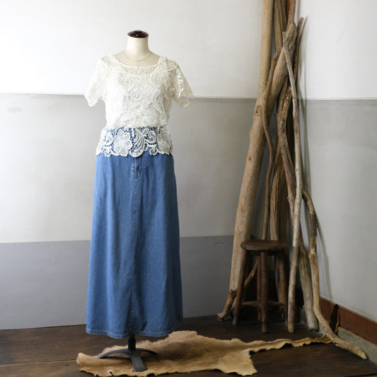 ヨーロッパ古着 ベロア ベージュゴールド カットソー