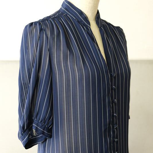 ヨーロッパ古着 ストライプ ネイビーブラウス