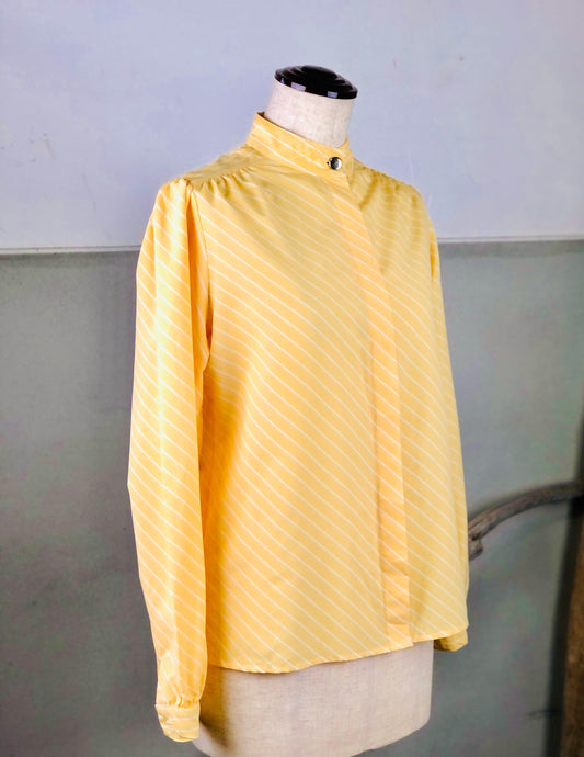 イギリス古着 イエロー ストライプ シャツブラウス