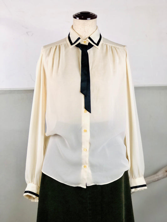 アメリカ古着オフホワイトパイピングシャツブラウス